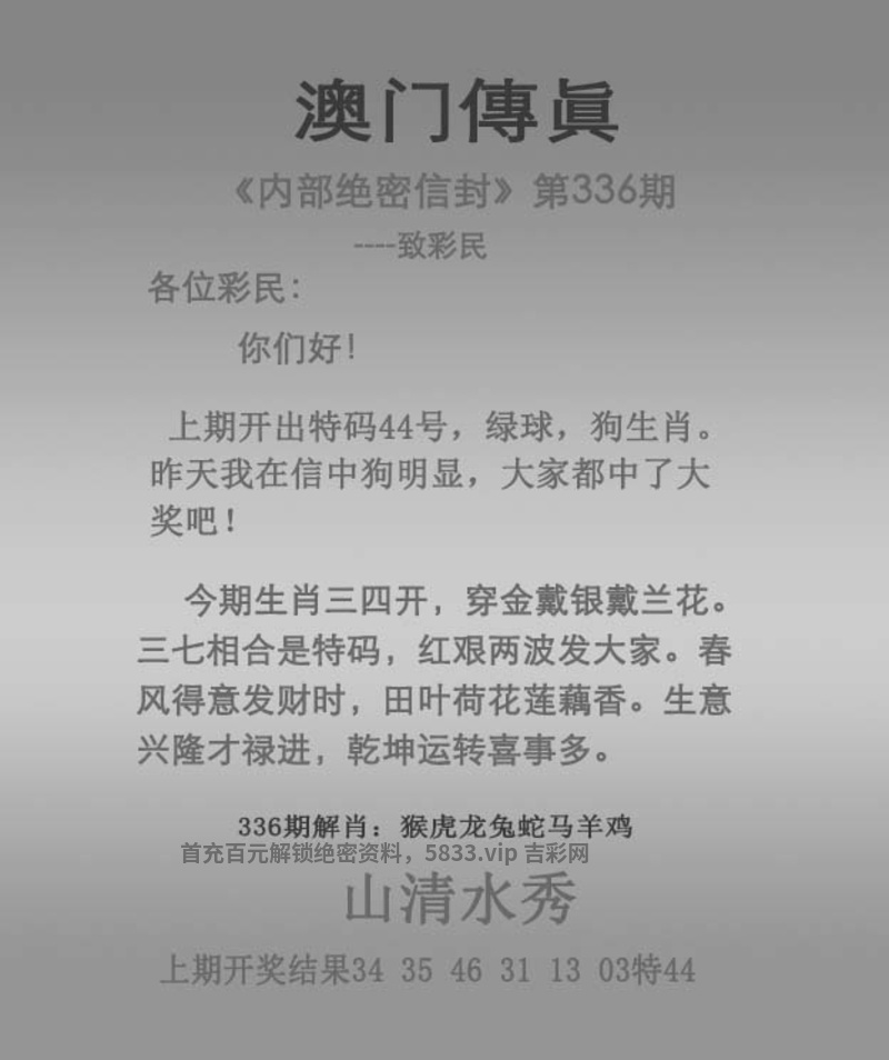 338期⑦肖:羊虎鼠蛇鸡猴牛 |